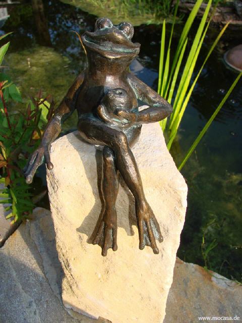 Wasserspiel komplett mit sandsteinfarbener Säule aus Steinguss und Bronzefigur (wasserspeiend).