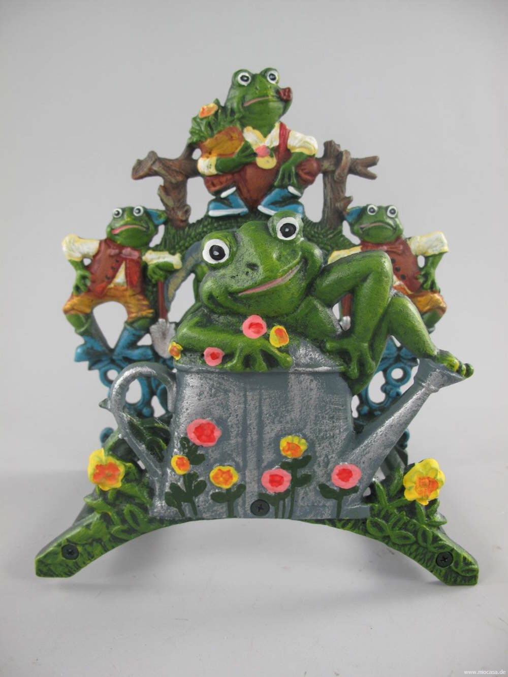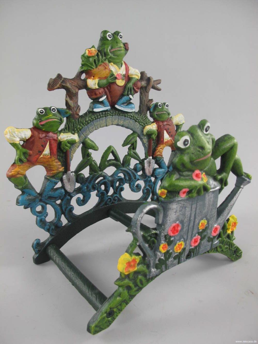 Praktischer und zugleich dekorativer kleiner Schlauchhalter aus Eisen, farbig bemalt.