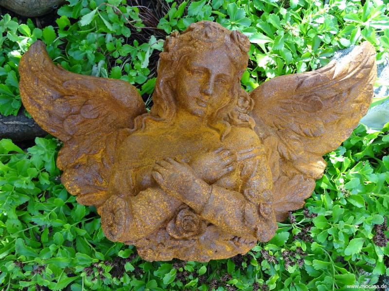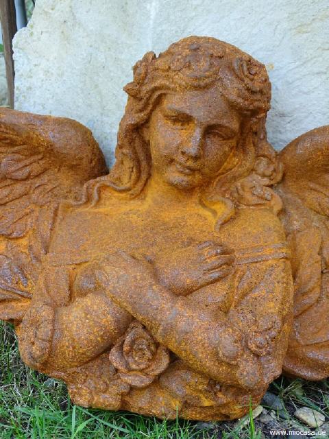 Engel mit Flügel aus Gußeisen mit Naturrostpatina.