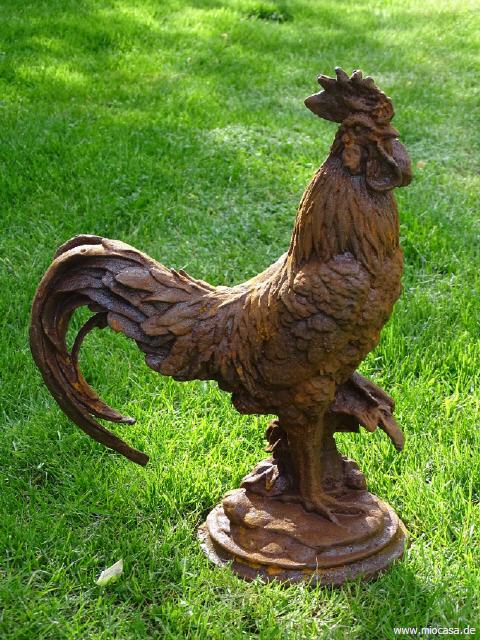 Die Figuren aus Gusseisen sind naturbelassen und mit einer Naturrostpatina versehen. Im Freien werden sie langsam oberflächlich weiter rosten und im Farbton etwas dunkler werden.