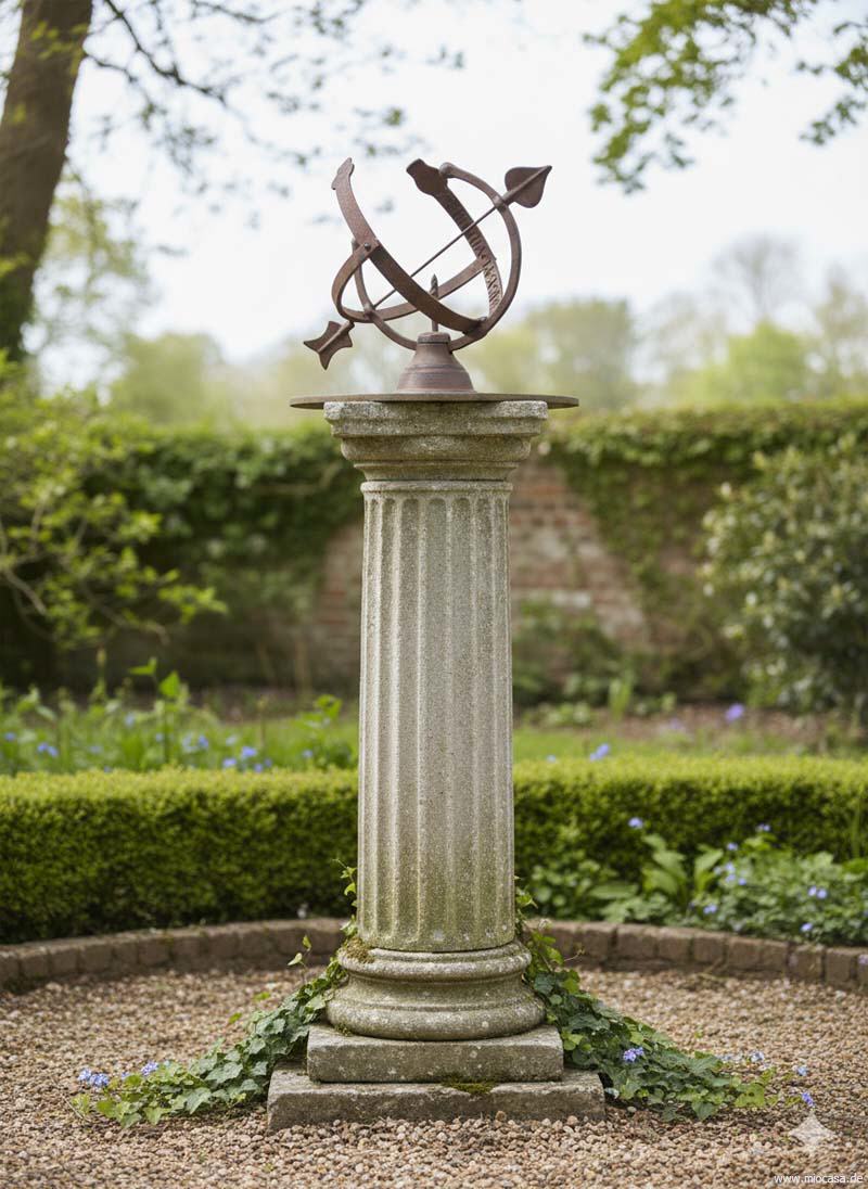 Sonnenuhr aus Gusseisen, braunlackiert.