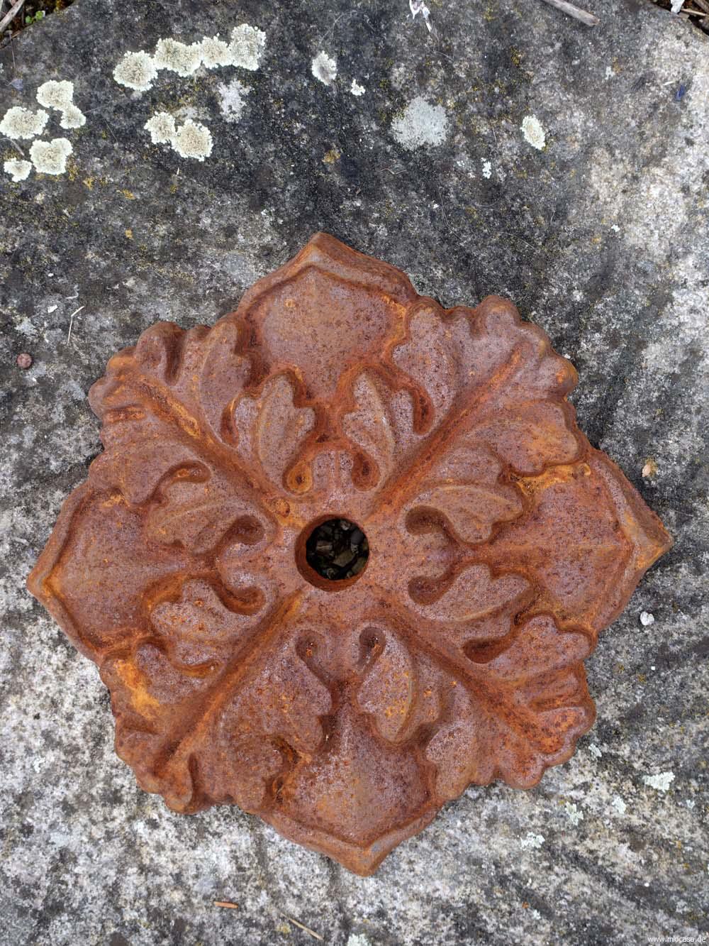 Nach alter Vorlage gefertigter Maueranker aus Eisen Rost. Dient heute eher zur Dekoration. Früher wurden diese Pfettenanker außen auf das Mauerwerk gesetzt und mit einer massiven Schraube mit den tragenden Holzbalken verschraubt. Der Anker nimmt dabei Zugspannungen auf, die im Gebäude auftreten.