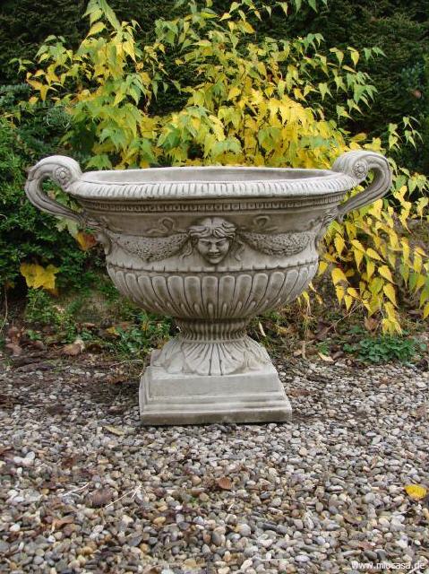 Im Freien unterliegen sie aber der normalen Verwitterung, d.h. es können sich im Schattenbereich Flechten und Moose bilden. Bedenken Sie dies, gerade wenn Sie auch im Winter Ihre Figuren ungeschützt im Freien stehen lassen. Achten sie bei Frost darauf, dass sich in Vertiefungen kein Wasser sammeln kann und dann gefriert. Wasserbecken, Brunnen und Tränken müssen bei Frost entleert und abgedeckt werden. Alle Vasen, Amphoren und Pflanztöpfe besitzen ein Ablaufloch für Wasser und müssen im Winter deshalb nicht abgedeckt werden. Im Winter sollen alle Steingussprodukte so platziert werden, dass Wasser darunter versickern kann. Nicht in Wasserpfützen oder gar am Teichrand stehen lassen.