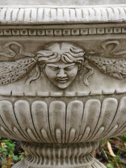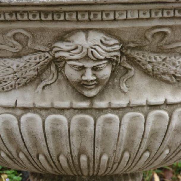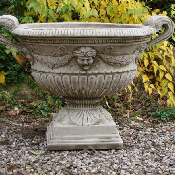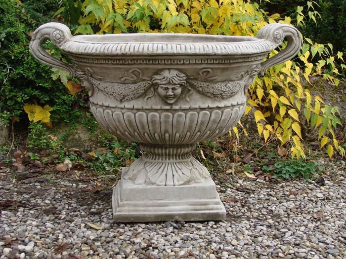 Beim englischen Antik-Steinguss handelt es sich um einen Guss aus gemahlenem Stein mit Beton vermischt. Das Gemisch wird in eine Form gegossen, anschließend von Hand sauber nachgearbeitet und die Oberflächen von Hand antik-grau patiniert. Die Figuren aus Antiksteinguss sind frostfest.