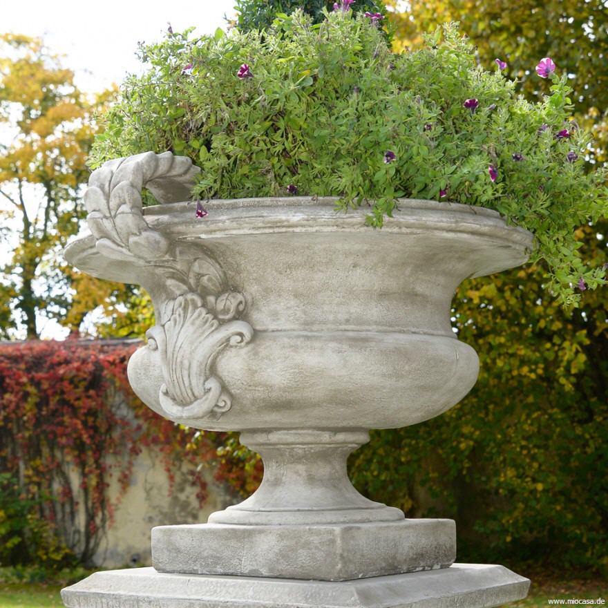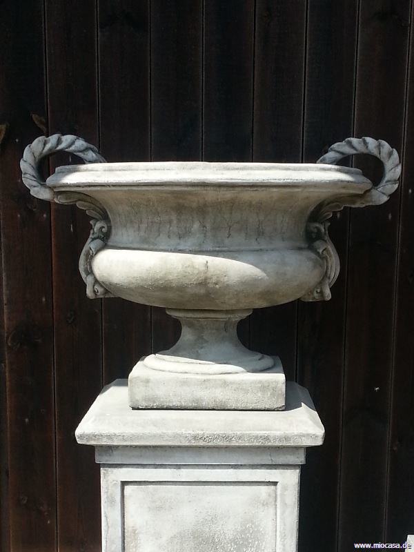 Vase aus massivem Steinguss, antik-grau patiniert.