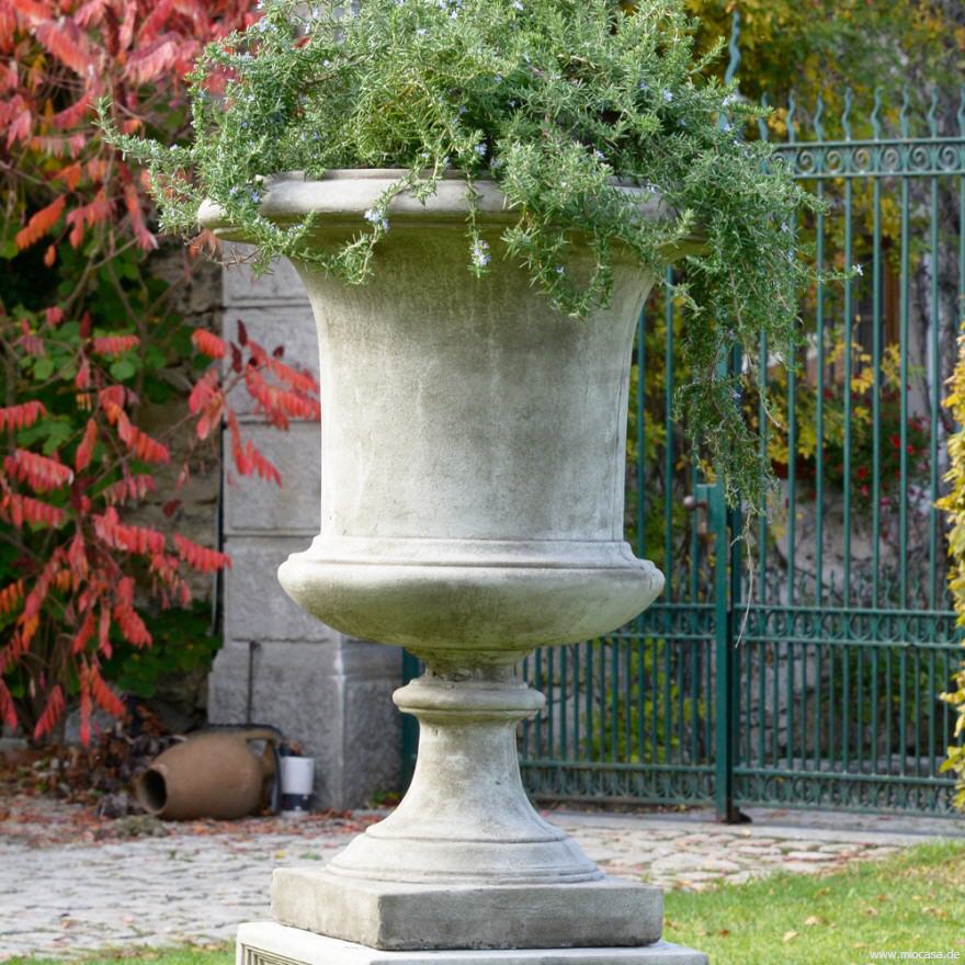 Vase aus massivem Steinguss, antik-grau patiniert.