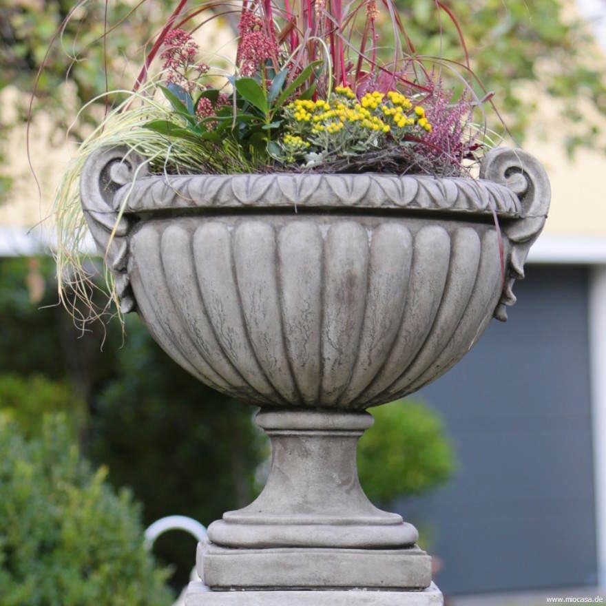 Pflanzvase, Amphore aus Englischem Antik-Steinguss, antik-grau patiniert