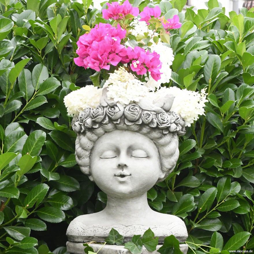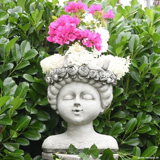 Beim englischen Antik-Steinguss handelt es sich um einen Guss aus gemahlenem Stein mit Beton vermischt. Das Gemisch wird in eine Form gegossen, anschließend von Hand sauber nachgearbeitet und die Oberflächen von Hand antik-grau patiniert. Die Figuren aus Antiksteinguss sind frostfest.