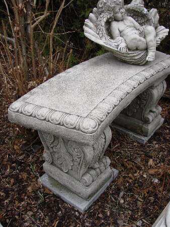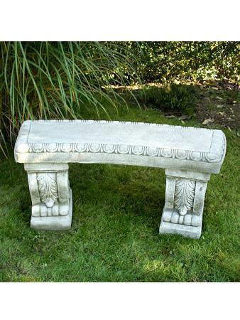 Frostfeste Stein-Sitzbank aus englischem Steinguss, hand-patiniert.