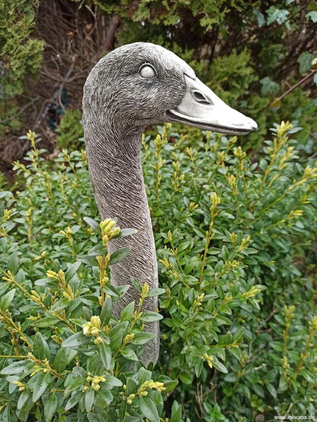 Im Freien unterliegen sie aber der normalen Verwitterung, d.h. es können sich im Schattenbereich Flechten und Moose bilden. Bedenken Sie dies, gerade wenn Sie auch im Winter Ihre Figuren ungeschützt im Freien stehen lassen. Achten sie bei Frost darauf, dass sich in Vertiefungen kein Wasser sammeln kann und dann gefriert. Wasserbecken, Brunnen und Tränken müssen bei Frost entleert und abgedeckt werden. Alle Vasen, Amphoren und Pflanztöpfe besitzen ein Ablaufloch für Wasser und müssen im Winter deshalb nicht abgedeckt werden. Im Winter sollen alle Steingussprodukte so platziert werden, dass Wasser darunter versickern kann. Nicht in Wasserpfützen oder gar am Teichrand stehen lassen.
