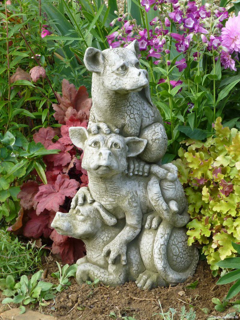 Beim englischen Antik-Steinguss handelt es sich um einen Guss aus gemahlenem Stein mit Beton vermischt. Das Gemisch wird in eine Form gegossen, anschließend von Hand sauber nachgearbeitet und die Oberflächen von Hand antik-grau patiniert. Die Figuren aus Antiksteinguss sind frostfest.