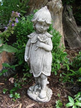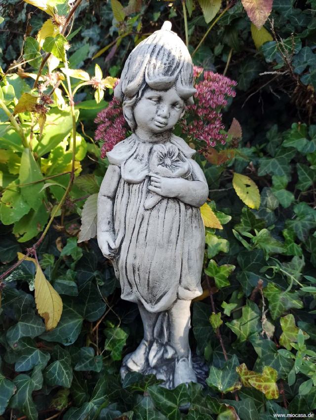 Beim Steinguss handelt es sich um einen Guss aus gemahlenem Stein mit Beton vermischt. Das Gemisch wird in eine Form gegossen, anschließend von Hand sauber nachgearbeitet und die Oberflächen von Hand patiniert. Die Figuren aus Steinguss sind frostfest.