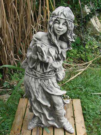 Zauberhafte, aber scheue Waldläuferin aus massivem Steinguss, patiniert.