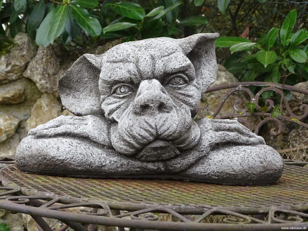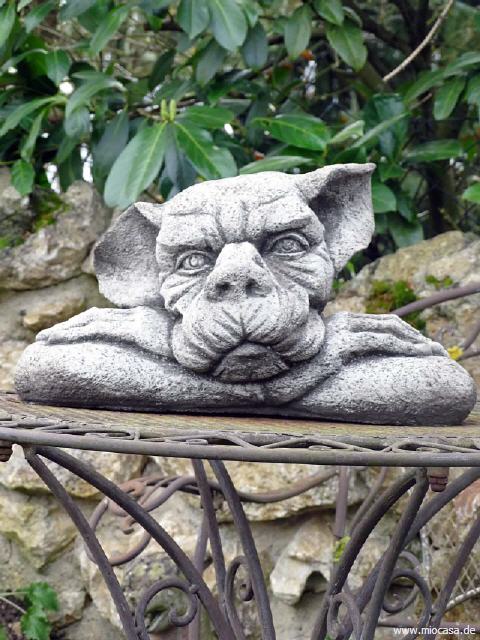 Im Freien unterliegen sie aber der normalen Verwitterung, d.h. es können sich im Schattenbereich Flechten und Moose bilden. Bedenken Sie dies, gerade wenn Sie auch im Winter Ihre Figuren ungeschützt im Freien stehen lassen. Achten sie bei Frost darauf, dass sich in Vertiefungen kein Wasser sammeln kann und dann gefriert. Wasserbecken, Brunnen und Tränken müssen bei Frost entleert und abgedeckt werden. Alle Vasen, Amphoren und Pflanztöpfe besitzen ein Ablaufloch für Wasser und müssen im Winter deshalb nicht abgedeckt werden. Im Winter sollen alle Steingussprodukte so platziert werden, dass Wasser darunter versickern kann. Nicht in Wasserpfützen oder gar am Teichrand stehen lassen.