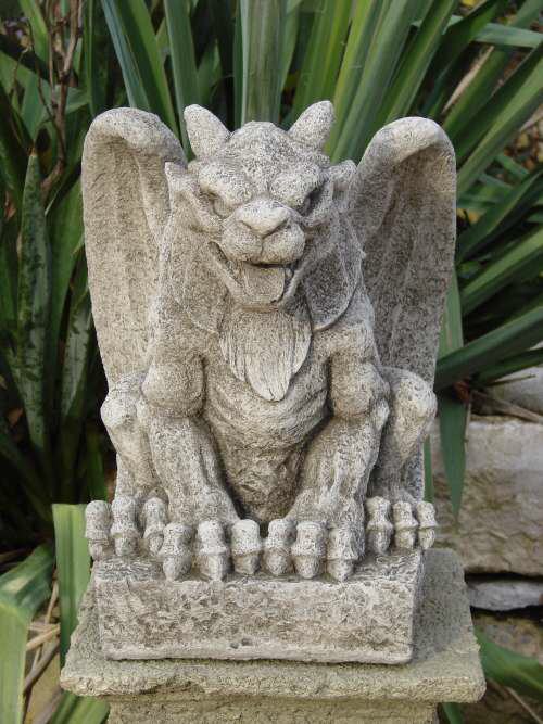 Großer Gargoyle aus englischem Antik - Steinguss, patiniert.