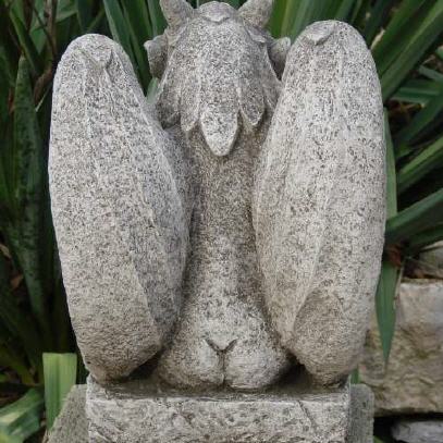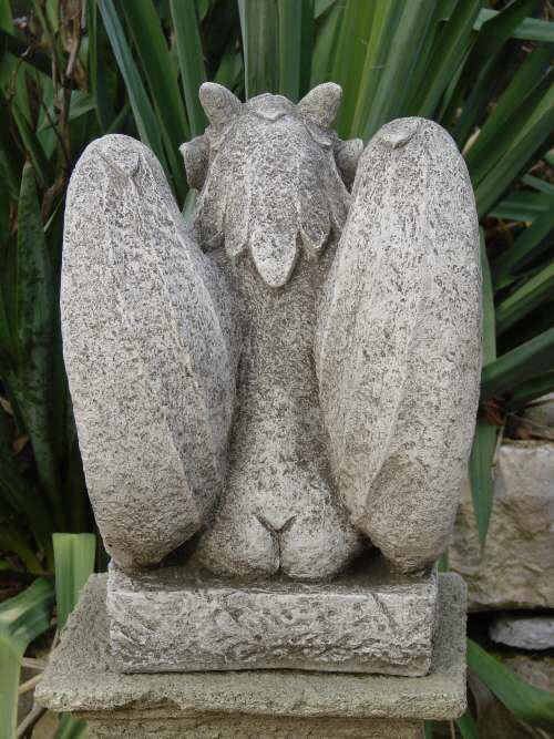 Beim Steinguss handelt es sich um einen Guss aus gemahlenem Stein mit Beton vermischt. Das Gemisch wird in eine Form gegossen, anschließend von Hand sauber nachgearbeitet und die Oberflächen von Hand patiniert. Die Figuren aus Steinguss sind frostfest.