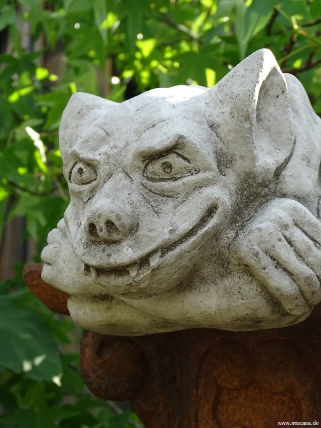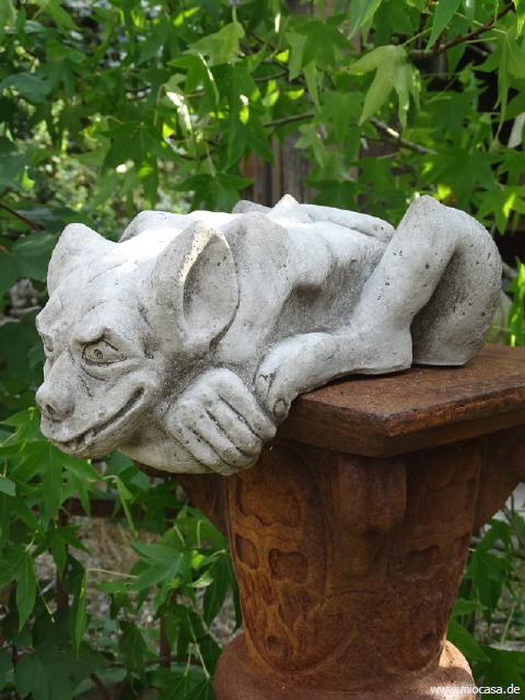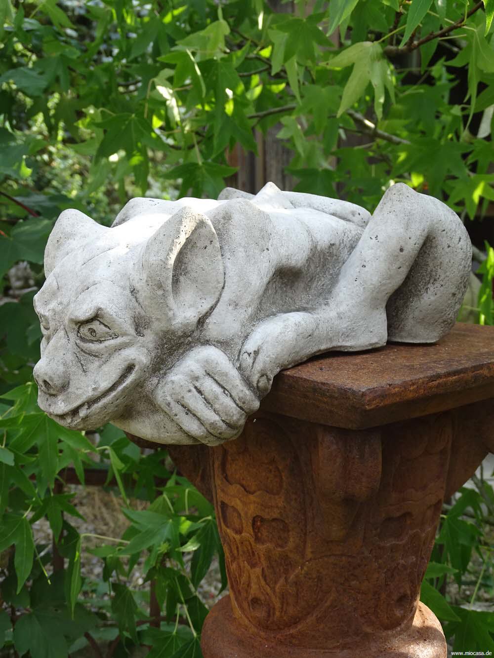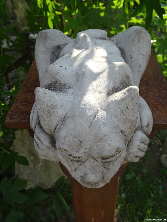 Beim englischen Antik-Steinguss handelt es sich um einen Guss aus gemahlenem Stein mit Beton vermischt. Das Gemisch wird in eine Form gegossen, anschließend von Hand sauber nachgearbeitet und die Oberflächen von Hand antik-grau patiniert. Die Figuren aus Antiksteinguss sind frostfest.