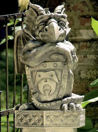Großer Torwächter aus massivem Steinguss, patiniert.