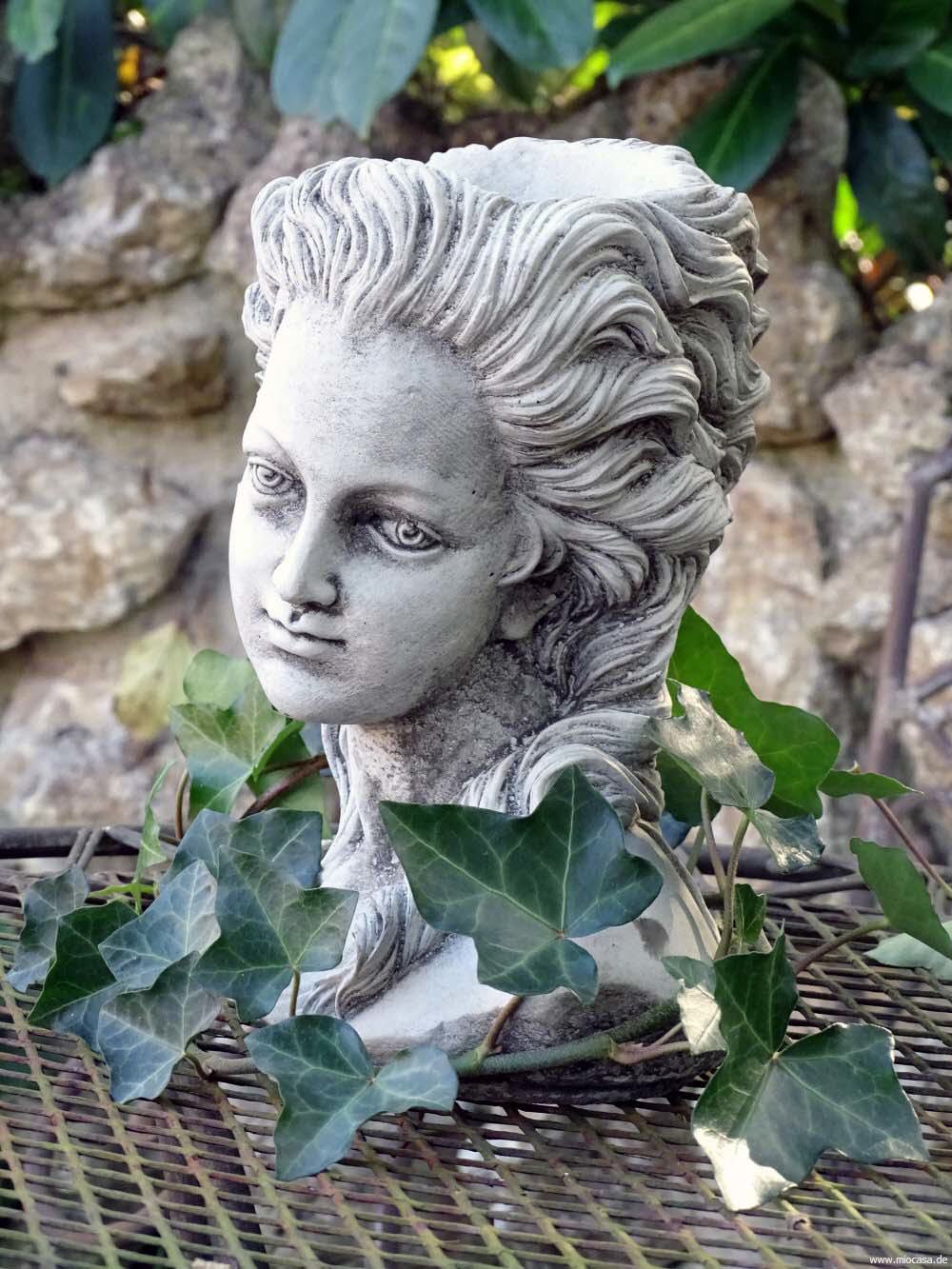 Mädchen Büste aus englischem Steinguss zum Bepflanzen.