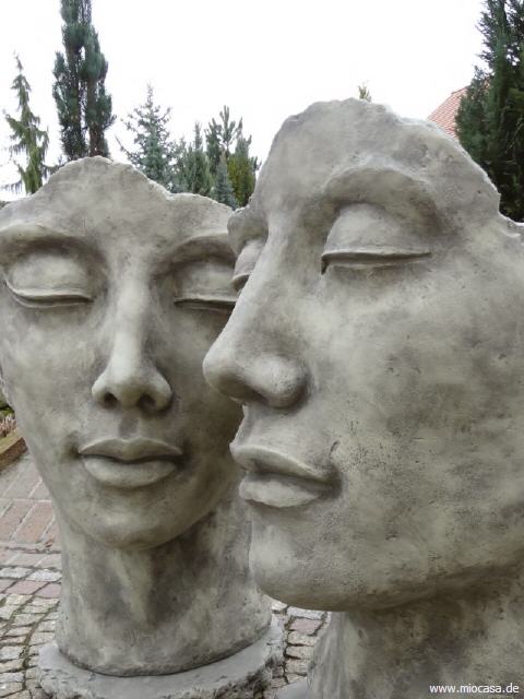 Gesicht "Frau und Mann" aus Steinguss, inkl. Platte zur Montage