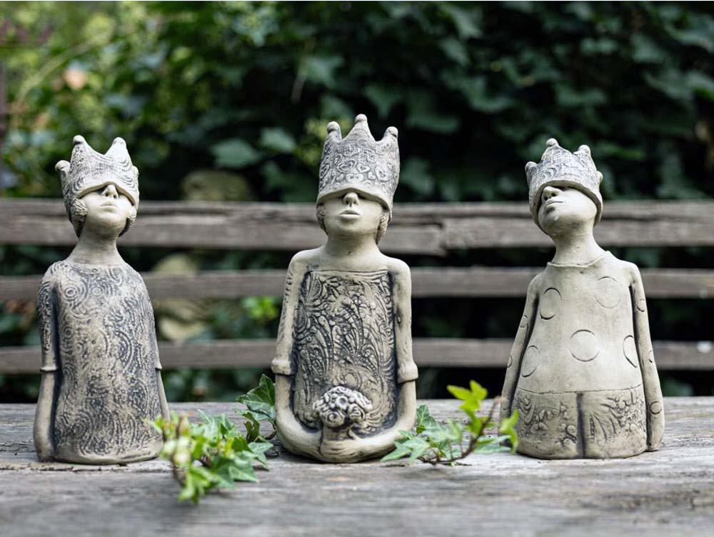 Beim englischen Antik-Steinguss handelt es sich um einen Guss aus gemahlenem Stein mit Beton vermischt. Das Gemisch wird in eine Form gegossen, anschließend von Hand sauber nachgearbeitet und die Oberflächen von Hand antik-grau patiniert. Die Figuren aus Antiksteinguss sind frostfest.