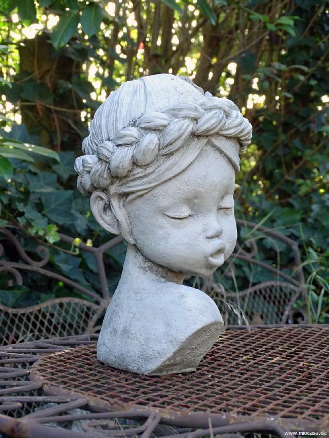 Im Freien unterliegen sie aber der normalen Verwitterung, d.h. es können sich im Schattenbereich Flechten und Moose bilden. Bedenken Sie dies, gerade wenn Sie auch im Winter Ihre Figuren ungeschützt im Freien stehen lassen. Achten sie bei Frost darauf, dass sich in Vertiefungen kein Wasser sammeln kann und dann gefriert. Wasserbecken, Brunnen und Tränken müssen bei Frost entleert und abgedeckt werden. Alle Vasen, Amphoren und Pflanztöpfe besitzen ein Ablaufloch für Wasser und müssen im Winter deshalb nicht abgedeckt werden. Im Winter sollen alle Steingussprodukte so platziert werden, dass Wasser darunter versickern kann. Nicht in Wasserpfützen oder gar am Teichrand stehen lassen.