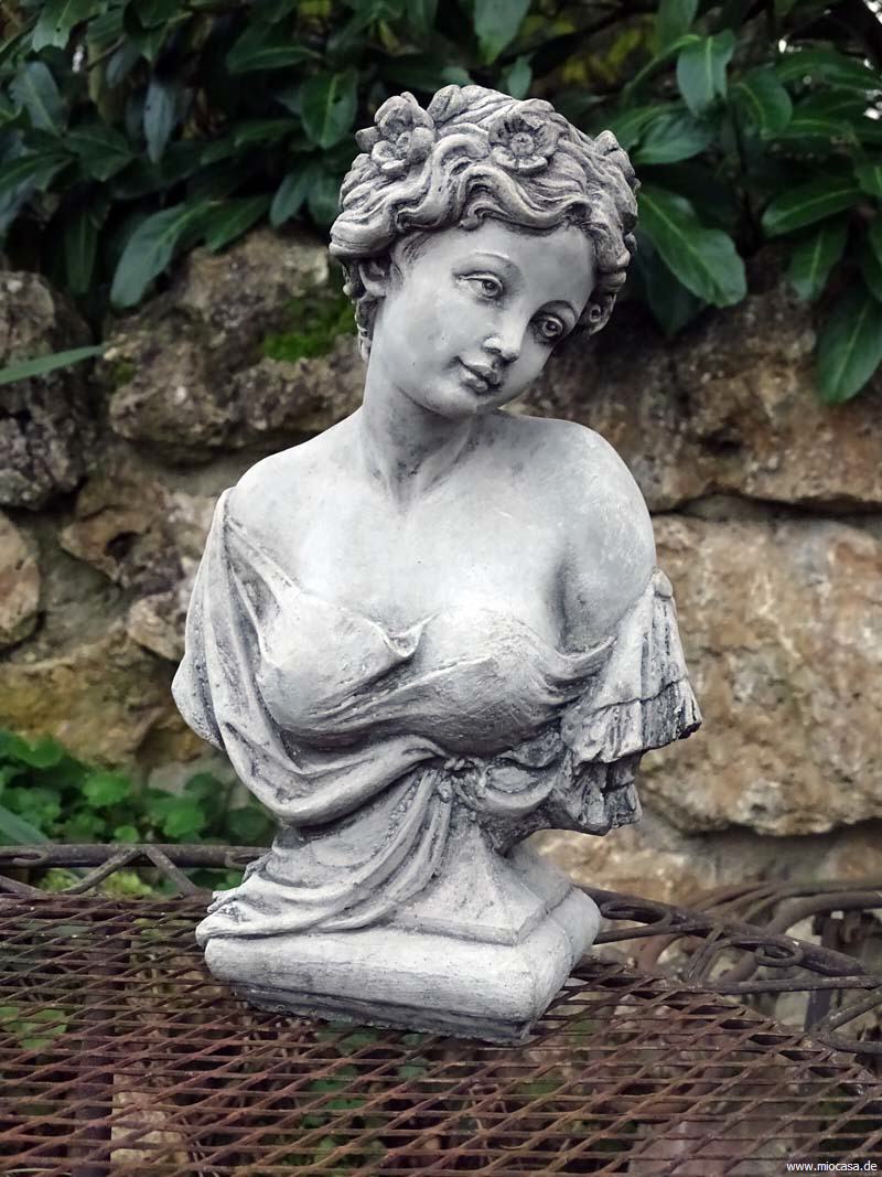 Beim englischen Antik-Steinguss handelt es sich um einen Guss aus gemahlenem Stein mit Beton vermischt. Das Gemisch wird in eine Form gegossen, anschließend von Hand sauber nachgearbeitet und die Oberflächen von Hand antik-grau patiniert. Die Figuren aus Antiksteinguss sind frostfest.