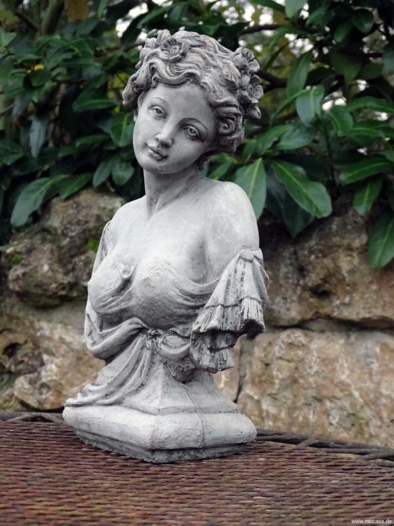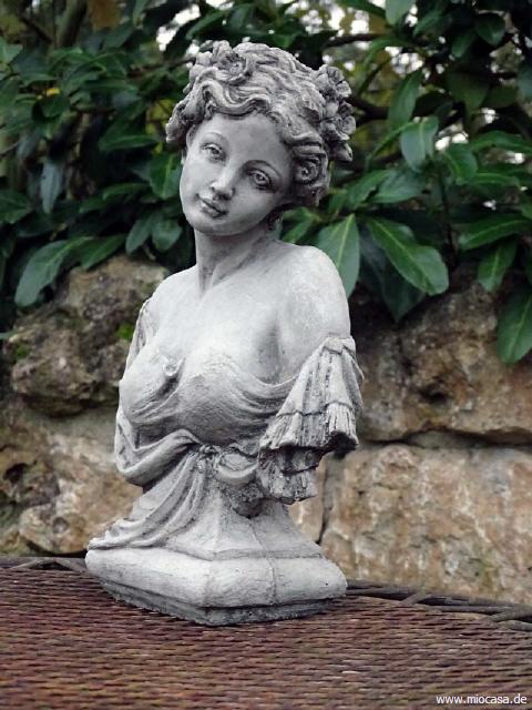Im Freien unterliegen sie aber der normalen Verwitterung, d.h. es können sich im Schattenbereich Flechten und Moose bilden. Bedenken Sie dies, gerade wenn Sie auch im Winter Ihre Figuren ungeschützt im Freien stehen lassen. Achten sie bei Frost darauf, dass sich in Vertiefungen kein Wasser sammeln kann und dann gefriert. Wasserbecken, Brunnen und Tränken müssen bei Frost entleert und abgedeckt werden. Alle Vasen, Amphoren und Pflanztöpfe besitzen ein Ablaufloch für Wasser und müssen im Winter deshalb nicht abgedeckt werden. Im Winter sollen alle Steingussprodukte so platziert werden, dass Wasser darunter versickern kann. Nicht in Wasserpfützen oder gar am Teichrand stehen lassen.