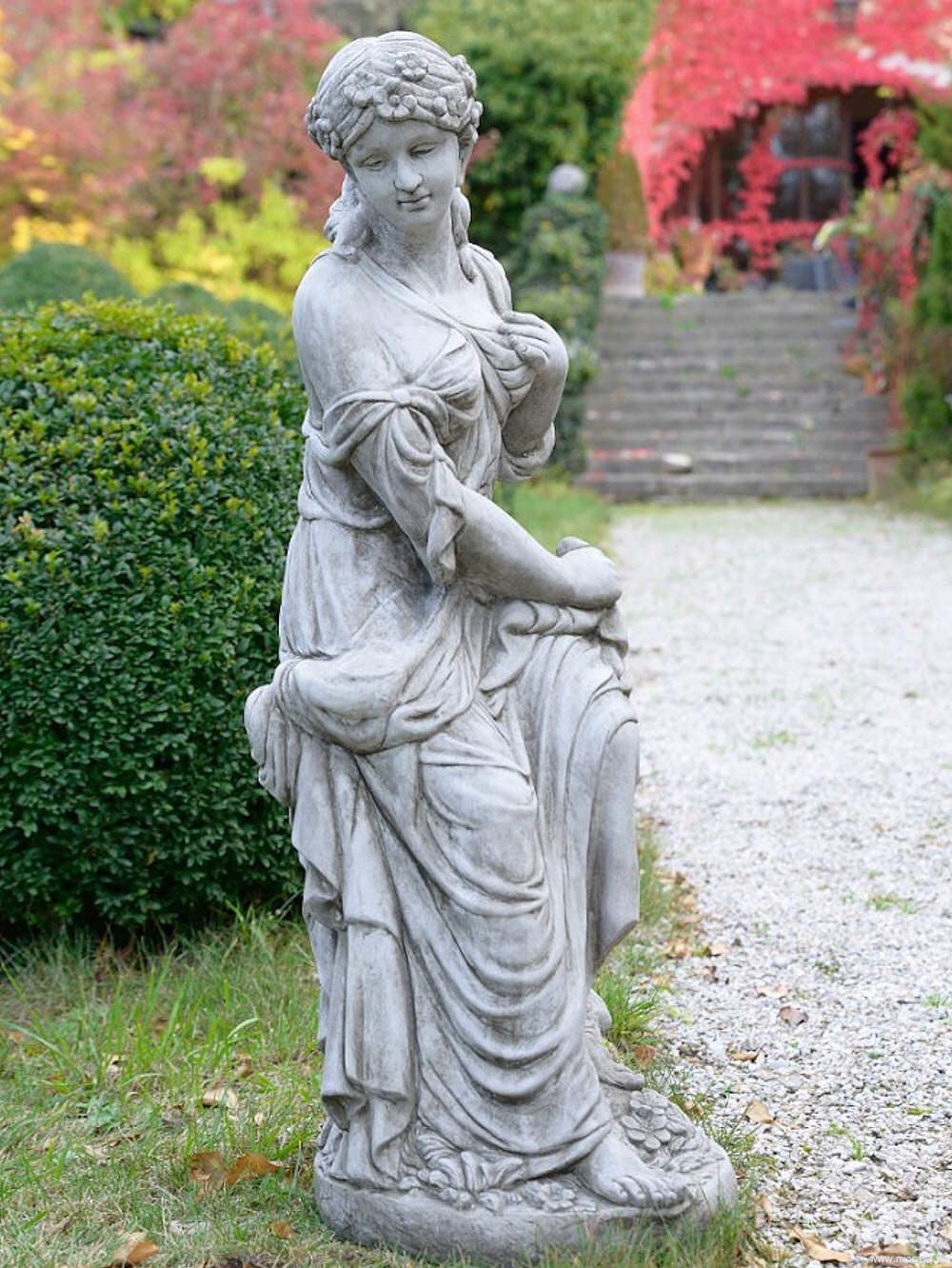 Beim englischen Antik-Steinguss handelt es sich um einen Guss aus gemahlenem Stein mit Beton vermischt. Das Gemisch wird in eine Form gegossen, anschließend von Hand sauber nachgearbeitet und die Oberflächen von Hand antik-grau patiniert. Die Figuren aus Antiksteinguss sind frostfest.