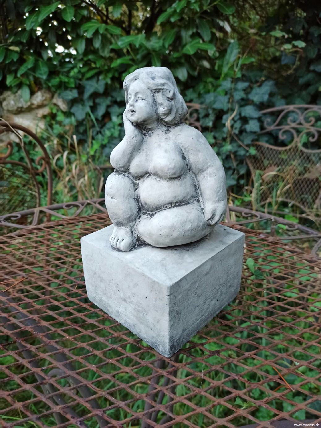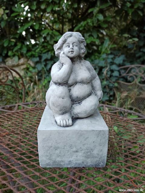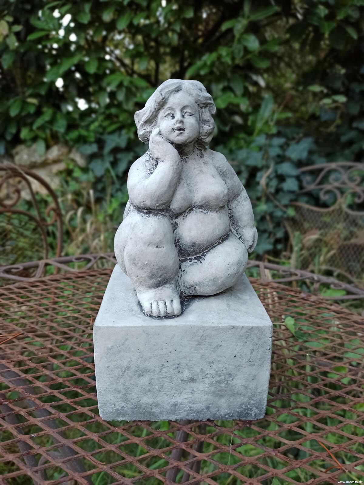 Beim englischen Antik-Steinguss handelt es sich um einen Guss aus gemahlenem Stein mit Beton vermischt. Das Gemisch wird in eine Form gegossen, anschließend von Hand sauber nachgearbeitet und die Oberflächen von Hand antik-grau patiniert. Die Figuren aus Antiksteinguss sind frostfest.