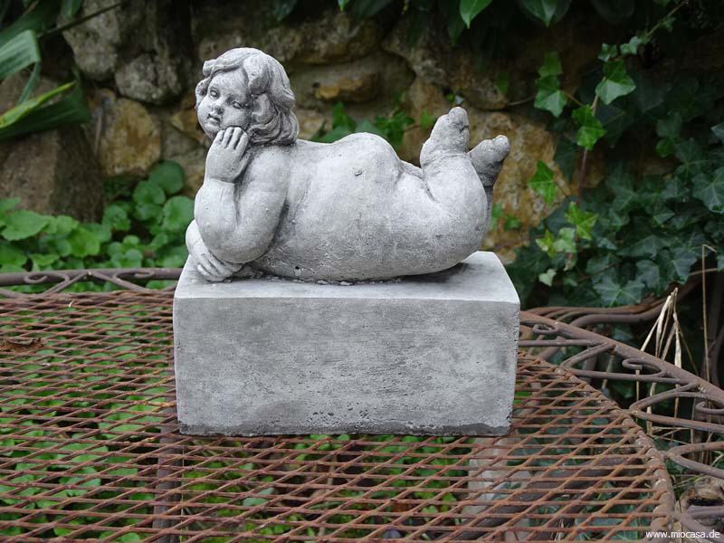 Beim englischen Antik-Steinguss handelt es sich um einen Guss aus gemahlenem Stein mit Beton vermischt. Das Gemisch wird in eine Form gegossen, anschließend von Hand sauber nachgearbeitet und die Oberflächen von Hand antik-grau patiniert. Die Figuren aus Antiksteinguss sind frostfest.