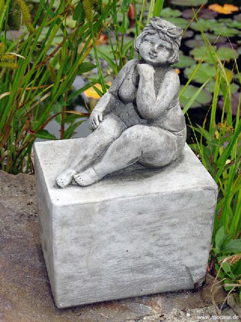 Beim englischen Antik-Steinguss handelt es sich um einen Guss aus gemahlenem Stein mit Beton vermischt. Das Gemisch wird in eine Form gegossen, anschließend von Hand sauber nachgearbeitet und die Oberflächen von Hand antik-grau patiniert. Die Figuren aus Antiksteinguss sind frostfest.