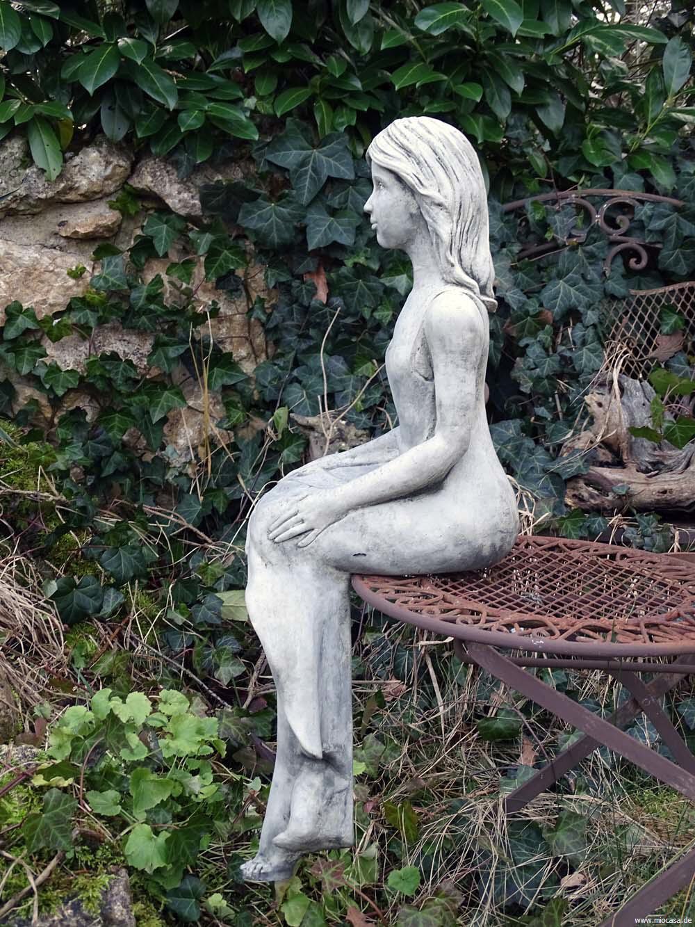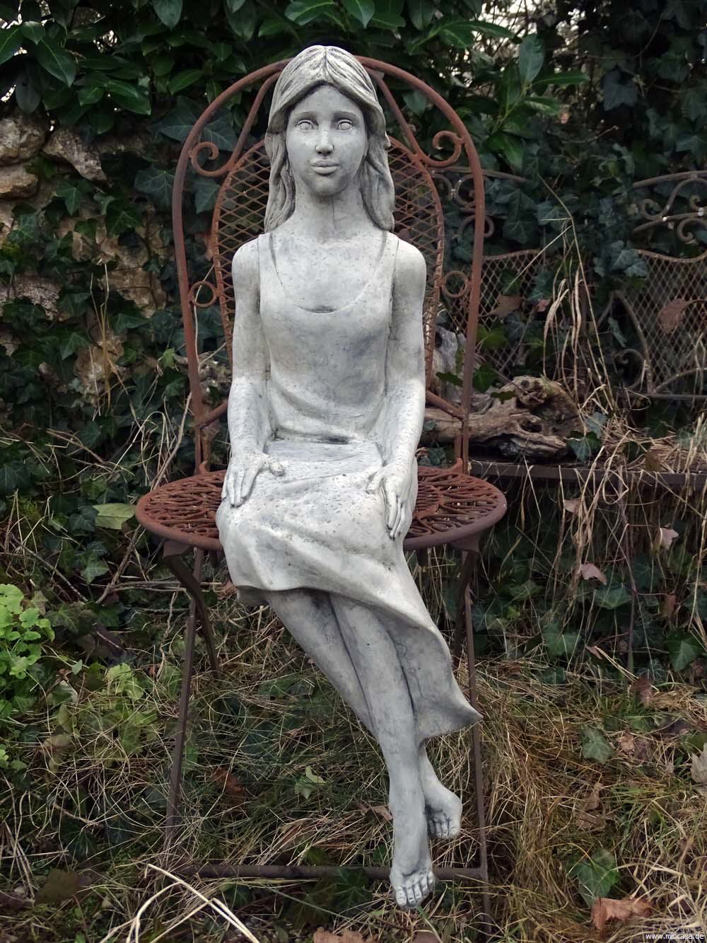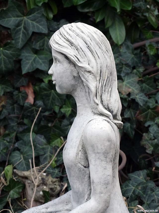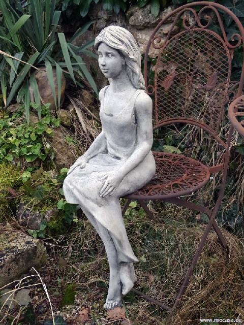 Sitzendes Mädchen Fiona - Skulptur aus massivem Steinguss, patiniert.