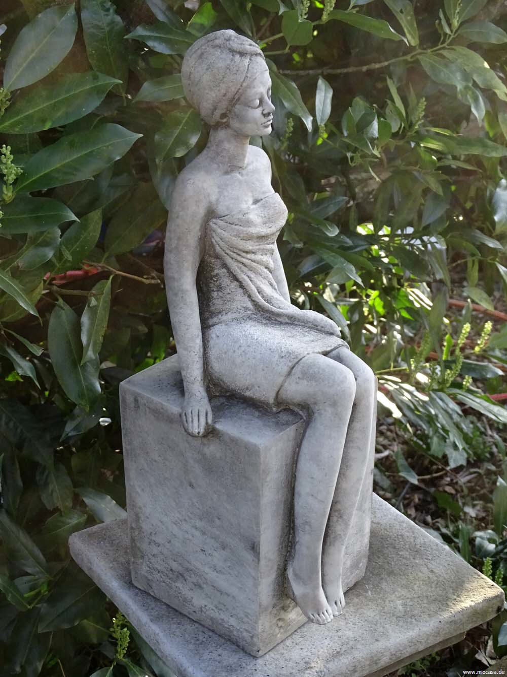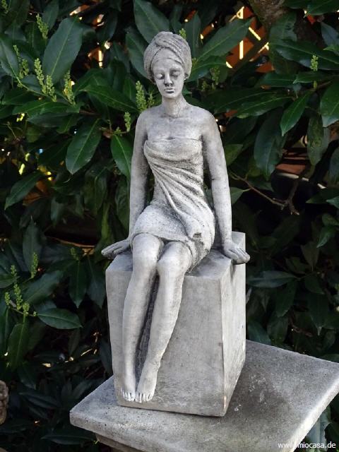 Im Freien unterliegen sie aber der normalen Verwitterung, d.h. es können sich im Schattenbereich Flechten und Moose bilden. Bedenken Sie dies, gerade wenn Sie auch im Winter Ihre Figuren ungeschützt im Freien stehen lassen. Achten sie bei Frost darauf, dass sich in Vertiefungen kein Wasser sammeln kann und dann gefriert. Wasserbecken, Brunnen und Tränken müssen bei Frost entleert und abgedeckt werden. Alle Vasen, Amphoren und Pflanztöpfe besitzen ein Ablaufloch für Wasser und müssen im Winter deshalb nicht abgedeckt werden. Im Winter sollen alle Steingussprodukte so platziert werden, dass Wasser darunter versickern kann. Nicht in Wasserpfützen oder gar am Teichrand stehen lassen.