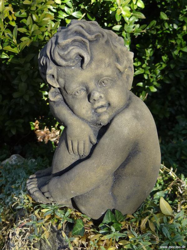 Beim Sandsteinguss handelt es sich um einen Guss aus gemahlenem Sandstein. Das Gemisch wird in eine Form gegossen, anschließend von Hand sauber nachgearbeitet und die Oberflächen von Hand antik-grau patiniert. Die Figuren aus Sandsteinguss sind frostfest.