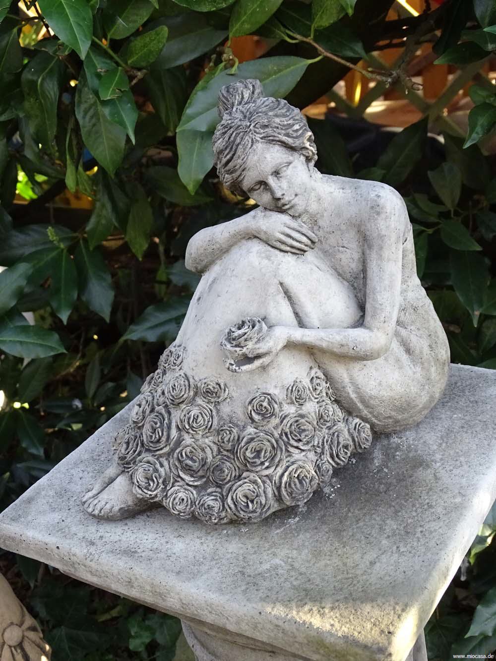 Beim englischen Antik-Steinguss handelt es sich um einen Guss aus gemahlenem Stein mit Beton vermischt. Das Gemisch wird in eine Form gegossen, anschließend von Hand sauber nachgearbeitet und die Oberflächen von Hand antik-grau patiniert. Die Figuren aus Antiksteinguss sind frostfest.