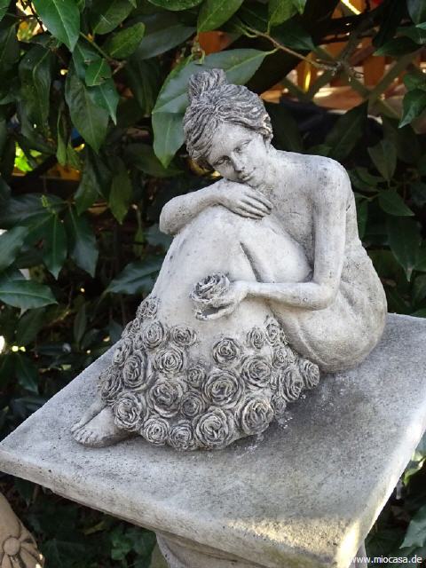 Im Freien unterliegen sie aber der normalen Verwitterung, d.h. es können sich im Schattenbereich Flechten und Moose bilden. Bedenken Sie dies, gerade wenn Sie auch im Winter Ihre Figuren ungeschützt im Freien stehen lassen. Achten sie bei Frost darauf, dass sich in Vertiefungen kein Wasser sammeln kann und dann gefriert. Wasserbecken, Brunnen und Tränken müssen bei Frost entleert und abgedeckt werden. Alle Vasen, Amphoren und Pflanztöpfe besitzen ein Ablaufloch für Wasser und müssen im Winter deshalb nicht abgedeckt werden. Im Winter sollen alle Steingussprodukte so platziert werden, dass Wasser darunter versickern kann. Nicht in Wasserpfützen oder gar am Teichrand stehen lassen.