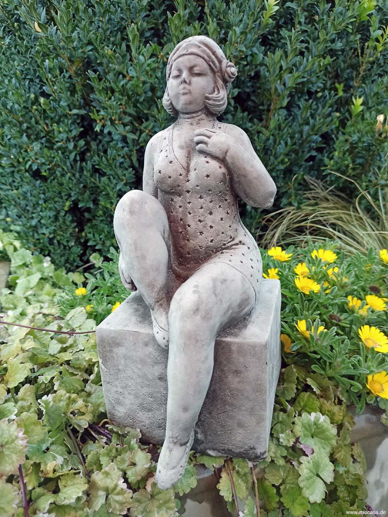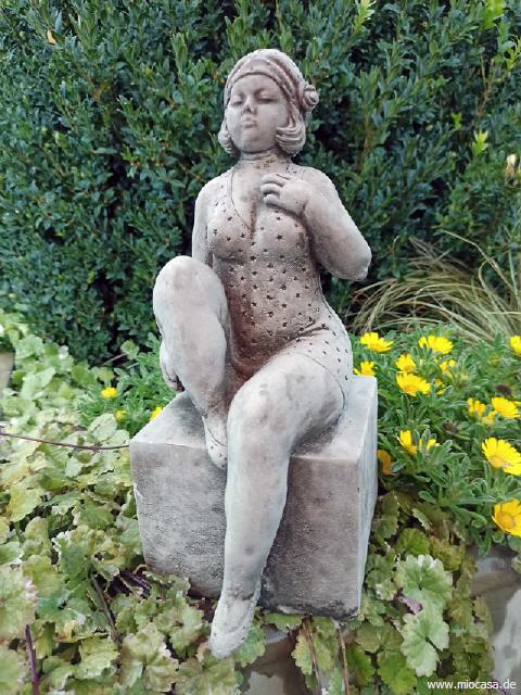 Beim englischen Antik-Steinguss handelt es sich um einen Guss aus gemahlenem Stein mit Beton vermischt. Das Gemisch wird in eine Form gegossen, anschließend von Hand sauber nachgearbeitet und die Oberflächen von Hand antik-grau patiniert. Die Figuren aus Antiksteinguss sind frostfest.