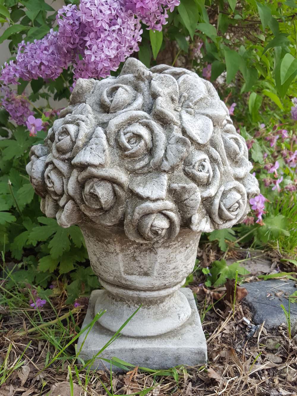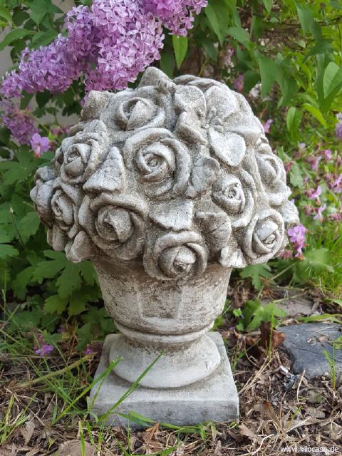 Beim englischen Antik-Steinguss handelt es sich um einen Guss aus gemahlenem Stein mit Beton vermischt. Das Gemisch wird in eine Form gegossen, anschließend von Hand sauber nachgearbeitet und die Oberflächen von Hand antik-grau patiniert. Die Figuren aus Antiksteinguss sind frostfest.