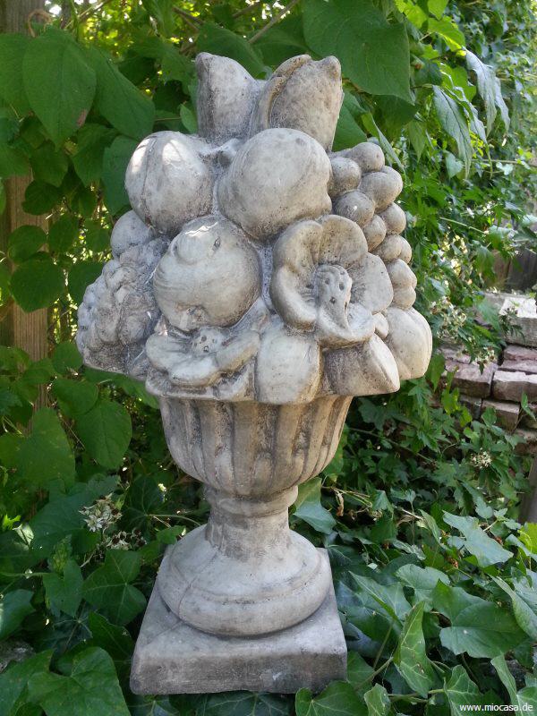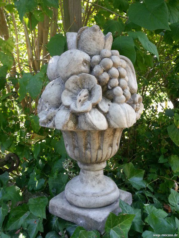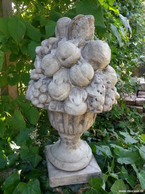 Großer Früchtekorb aus Steinguss, antikgrau.