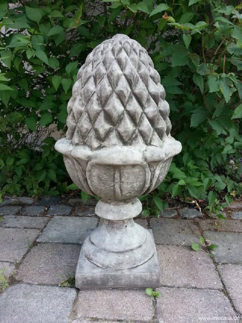 Großer Pinienzapfen aus Steinguss, antikgrau.