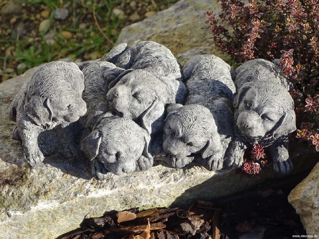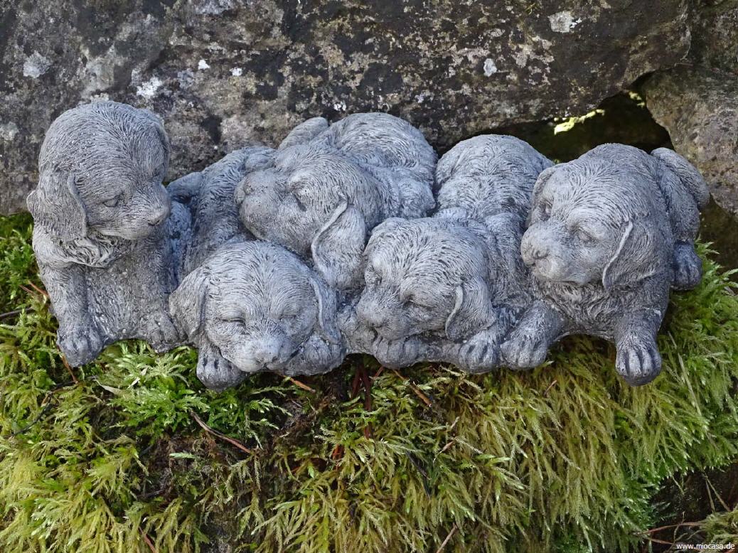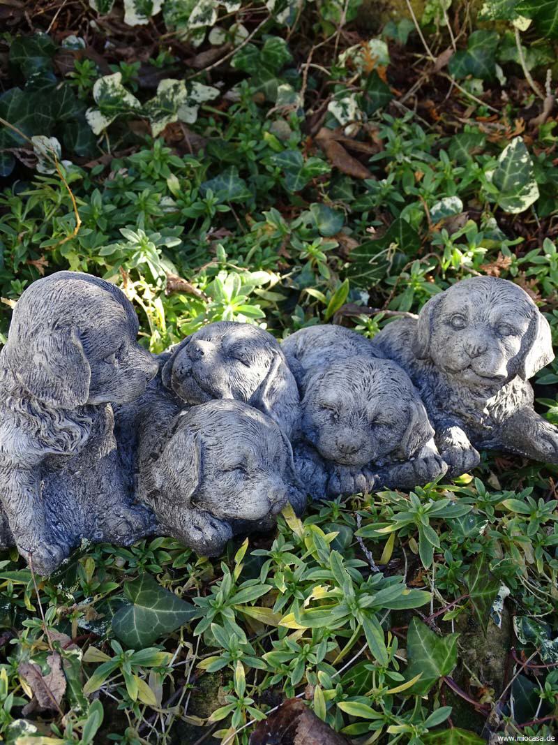 Beim englischen Antik-Steinguss handelt es sich um einen Guss aus gemahlenem Stein mit Beton vermischt. Das Gemisch wird in eine Form gegossen, anschließend von Hand sauber nachgearbeitet und die Oberflächen von Hand antik-grau patiniert. Die Figuren aus Antiksteinguss sind frostfest.