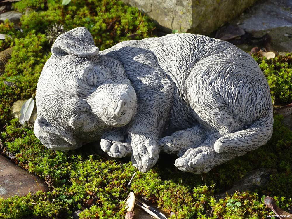 Beim englischen Antik-Steinguss handelt es sich um einen Guss aus gemahlenem Stein mit Beton vermischt. Das Gemisch wird in eine Form gegossen, anschließend von Hand sauber nachgearbeitet und die Oberflächen von Hand antik-grau patiniert. Die Figuren aus Antiksteinguss sind frostfest.