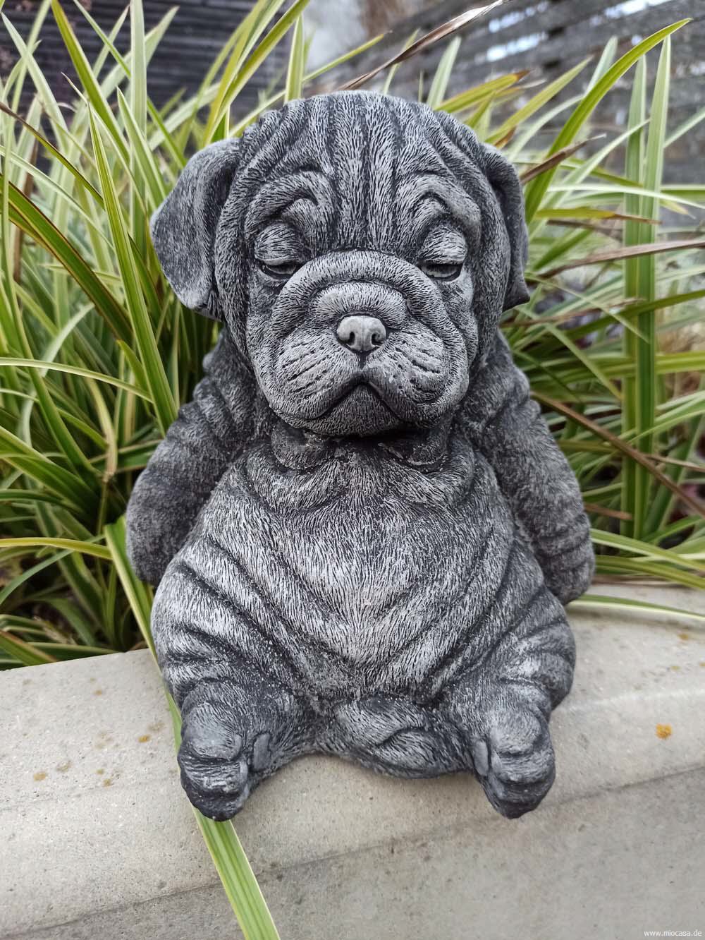 Beim englischen Antik-Steinguss handelt es sich um einen Guss aus gemahlenem Stein mit Beton vermischt. Das Gemisch wird in eine Form gegossen, anschließend von Hand sauber nachgearbeitet und die Oberflächen von Hand antik-grau patiniert. Die Figuren aus Antiksteinguss sind frostfest.