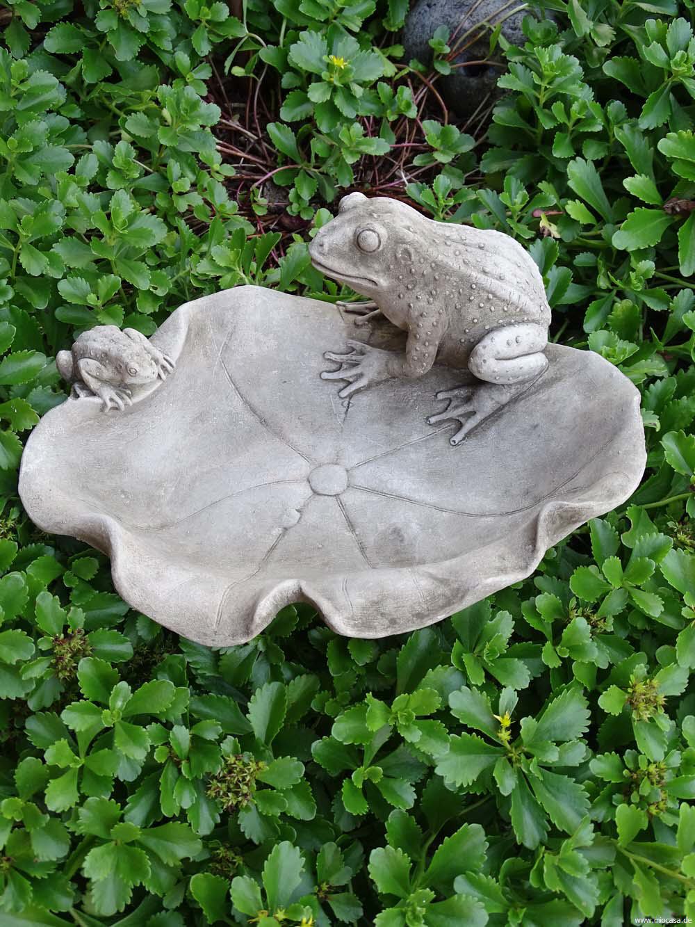 Vogelbad oder Vogeltränke "Two Frogs on Leaf"