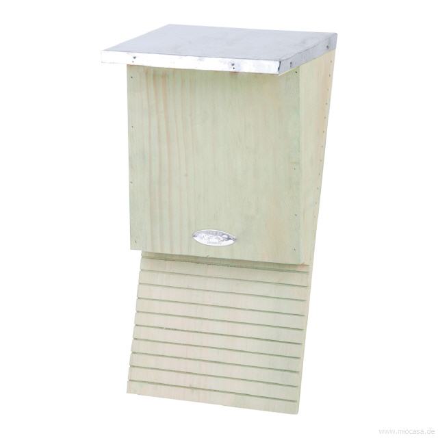 Dieser Fledermauskasten bietet mehreren Sorten von kleinen Fledermäusen einen idealen Wohnraum. Vorzugsweise an einer geschützten Stelle an die Fassade hängen. Achten Sie darauf, dass der Kasten nicht in der vollen Sonne hängt. Dieser Fledermauskasten verfügt über 2 Kammern; Untersuchungen haben ergeben, dass mehrere Kammern mehr Fledermäuse in den Nistkasten locken. Fledermäuse leben gerne zusammen.