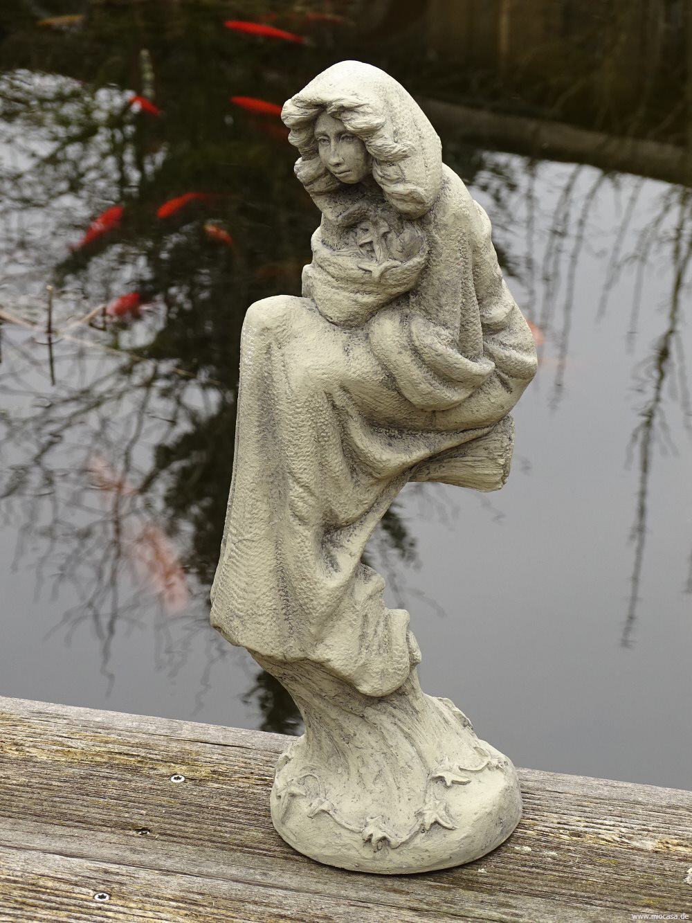 Gemisch aus Beton und Kunstharz. Mit Gummifüßchen zur Schonung von Möbeloberflächen.