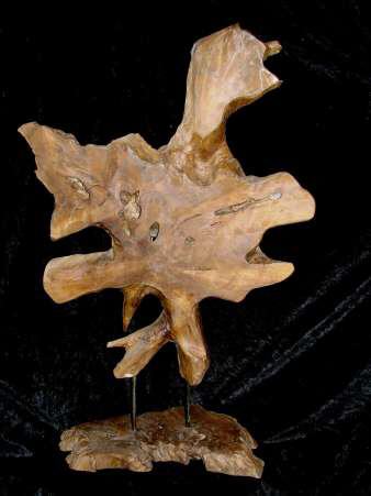 Teak antik mit 2 Metallstangen auf Fuß befestigt.